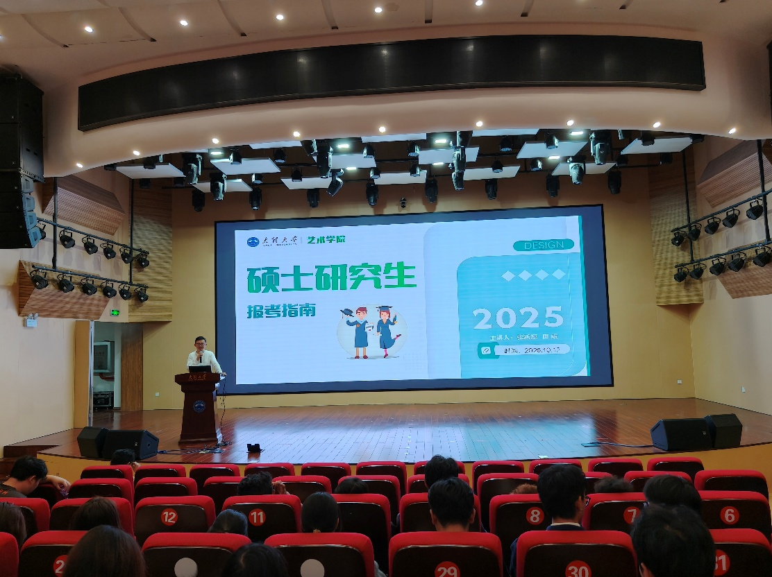 10月12日,艺术学院在古城校区音乐厅举办2025年考研宣讲动员会。艺术学院副院长孙聪,研究生办田威、张跃源等出席宣讲会,活动由学生办负责人胡家瑄主持,2022级视觉传达设计、2023级视觉传达设计、音乐学、绘画专业近120余名学生参加活动。 孙聪为同学们带来了最为关切的“备考干货”。他对学院近三年的考研数据进行了系统梳理与深度分析,通过一系列详实的案例,清晰展示了报考趋势、录取情况与发展动态。基于此,他就在校期间的备考时间规划、目标院校的科学遴选等提出了极具建设性的指导建议,帮助同学们规避误区,提升备考效率。 田威为同学们的报考决策提供了有力指导。他对本院硕士点的学科设置、导师团队及近年招录情况进行了系统解读。在介绍学院各专业方向的特色与优势时,结合不同方向的特点,为同学们精准梳理了考试科目、推荐了复习参考书目,他特别强调,备考是一场自我提升的艰苦征程,同学们务必结合自身实际,科学定位,制定最适合自己的复习方案。 张跃源从考研的价值与意义切入,阐述深造学习对于提升个人专业素养、拓展学术视野以及拓宽未来职业发展通道的重要作用。他围绕报考指南、招生政策与专业方向选择等关键议题进行了宏观分析。 在互动答疑环节,同学们踊跃提问,气氛热烈。在场的学院领导、老师耐心聆听,逐一给予了详细而中肯的解答。 本次宣讲会内容详实、针对性强,体现出艺术学院对考研工作的高度重视。学院将持续加强对学生考研的引导与服务,在政策解读、复习辅导、心理支持等方面提供全方位保障,营造积极向上、笃学砺行的优良学风,助力学生在深造路上行稳致远 |